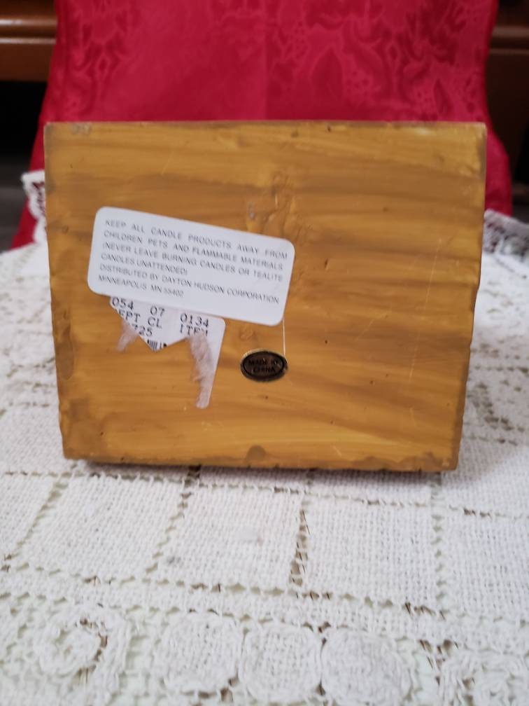 Perfect to any Christmas decor. I had it for years. Kind a heavy & sturdy. Very cute. Nice addition to a retro Christmas decor. Gently used & in good condition.