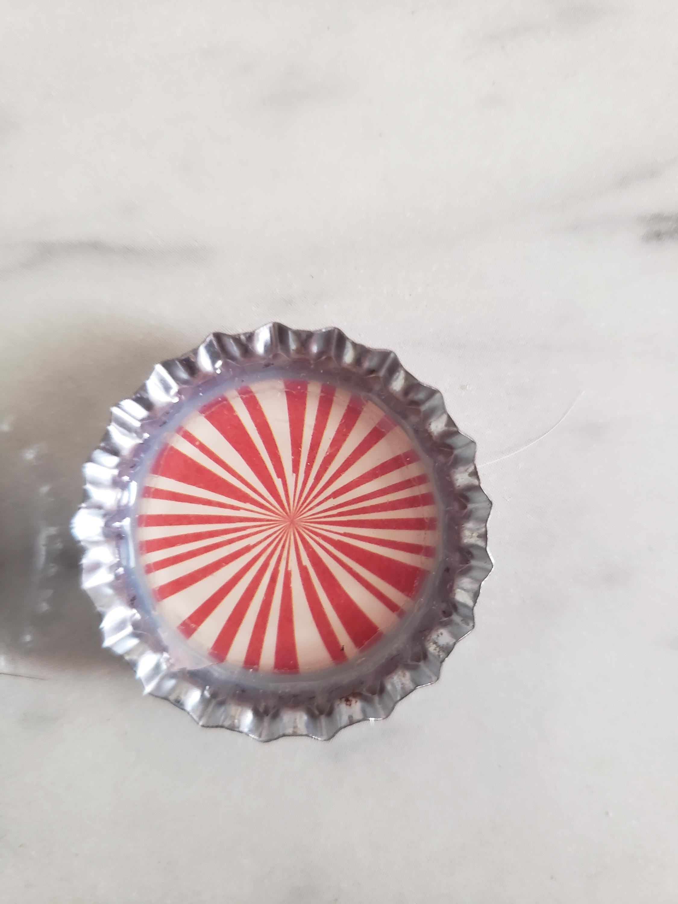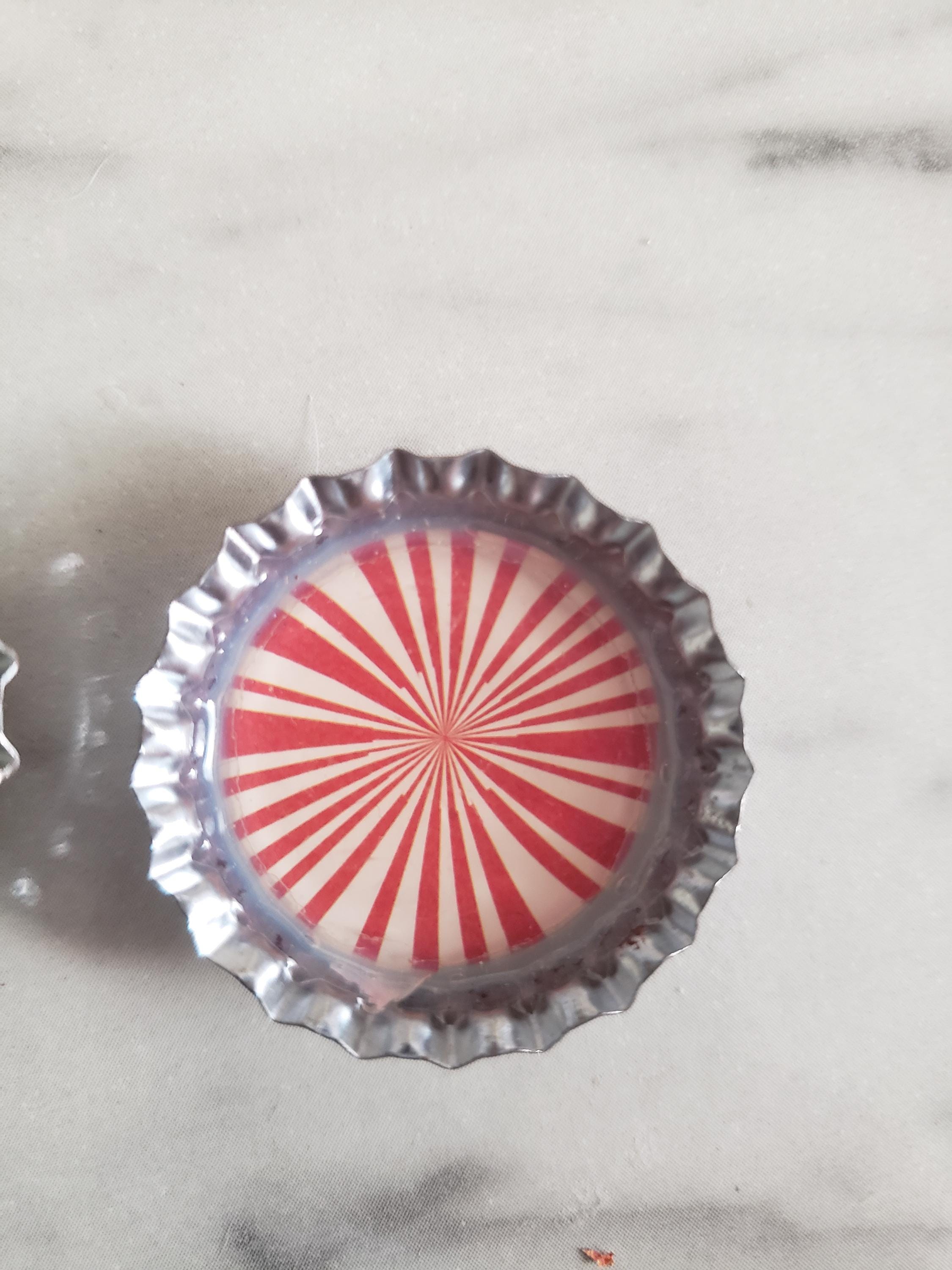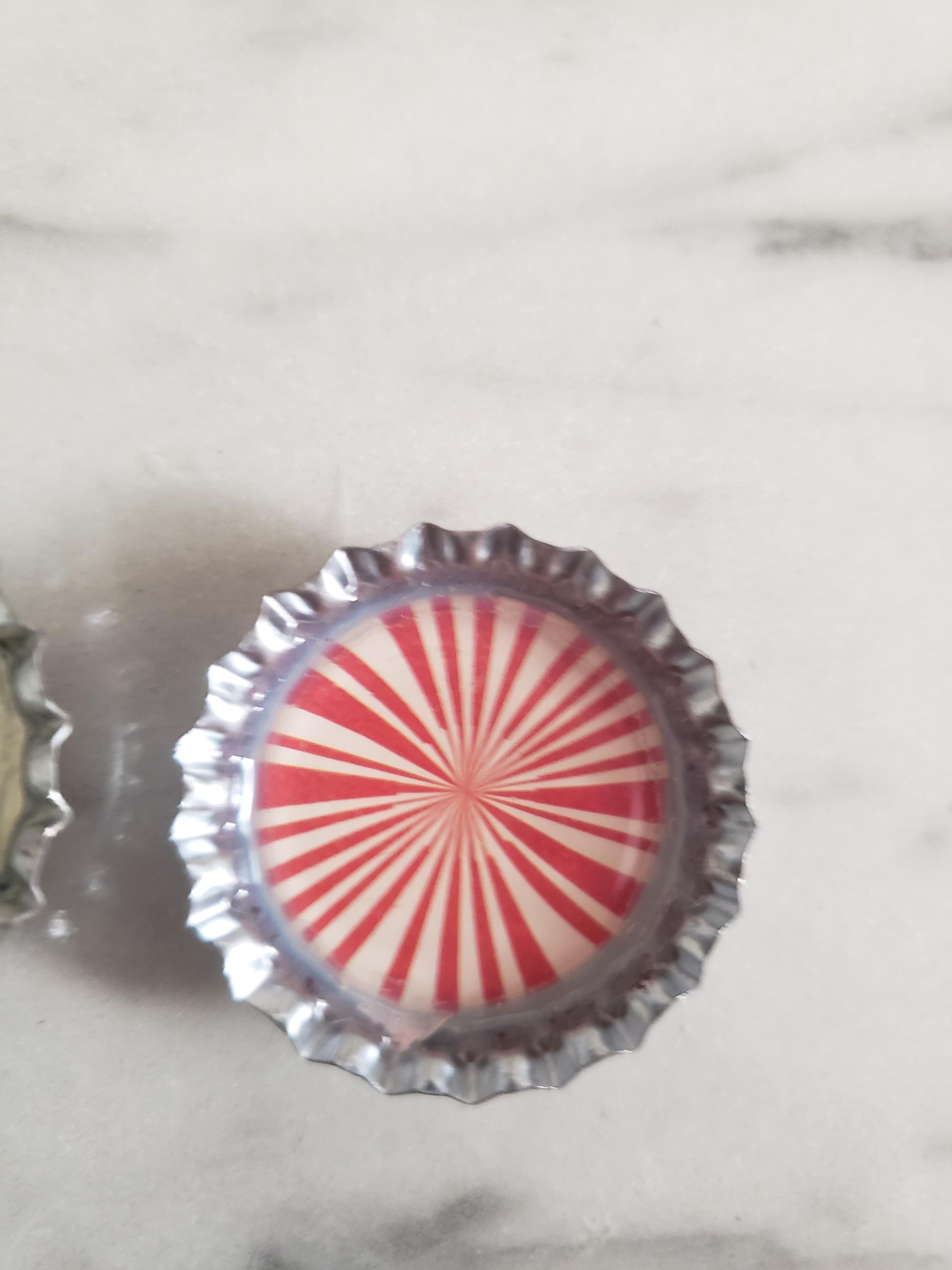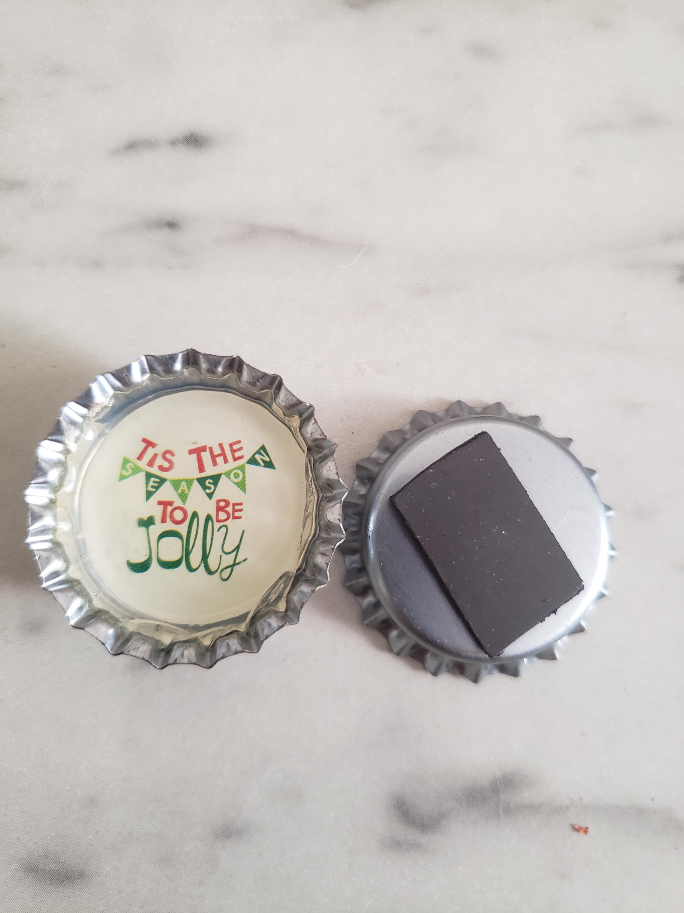 Set of 2 cute Christmas bottle cap magnets for the holidays. One has red/white representing a peppermint candy & other has cute festive saying "Tis the season to be Jolly". Handmade by my friend.