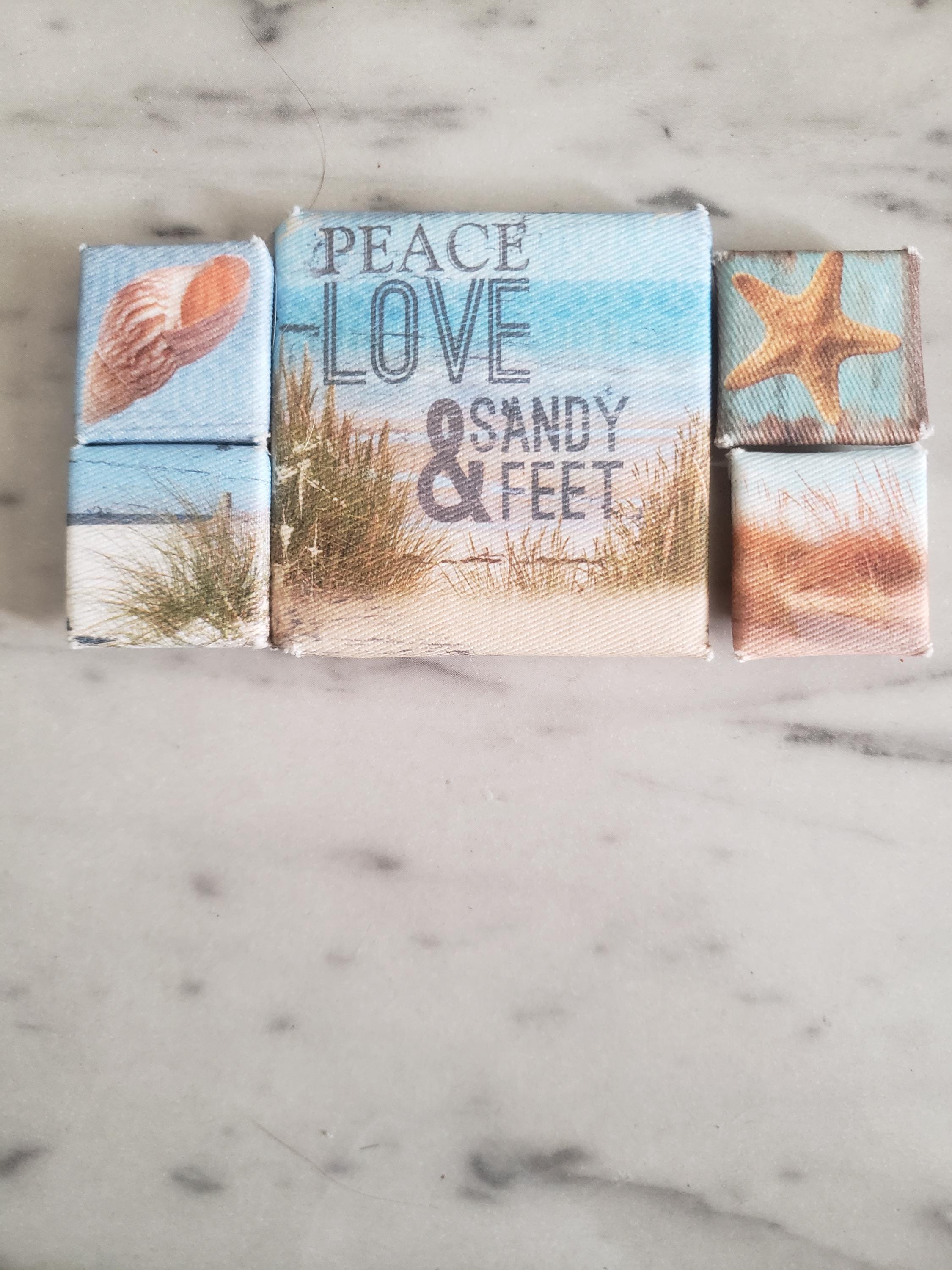Beach Theme Canvas Magnets: Handmade Dorm Locker Decor, Set of 5