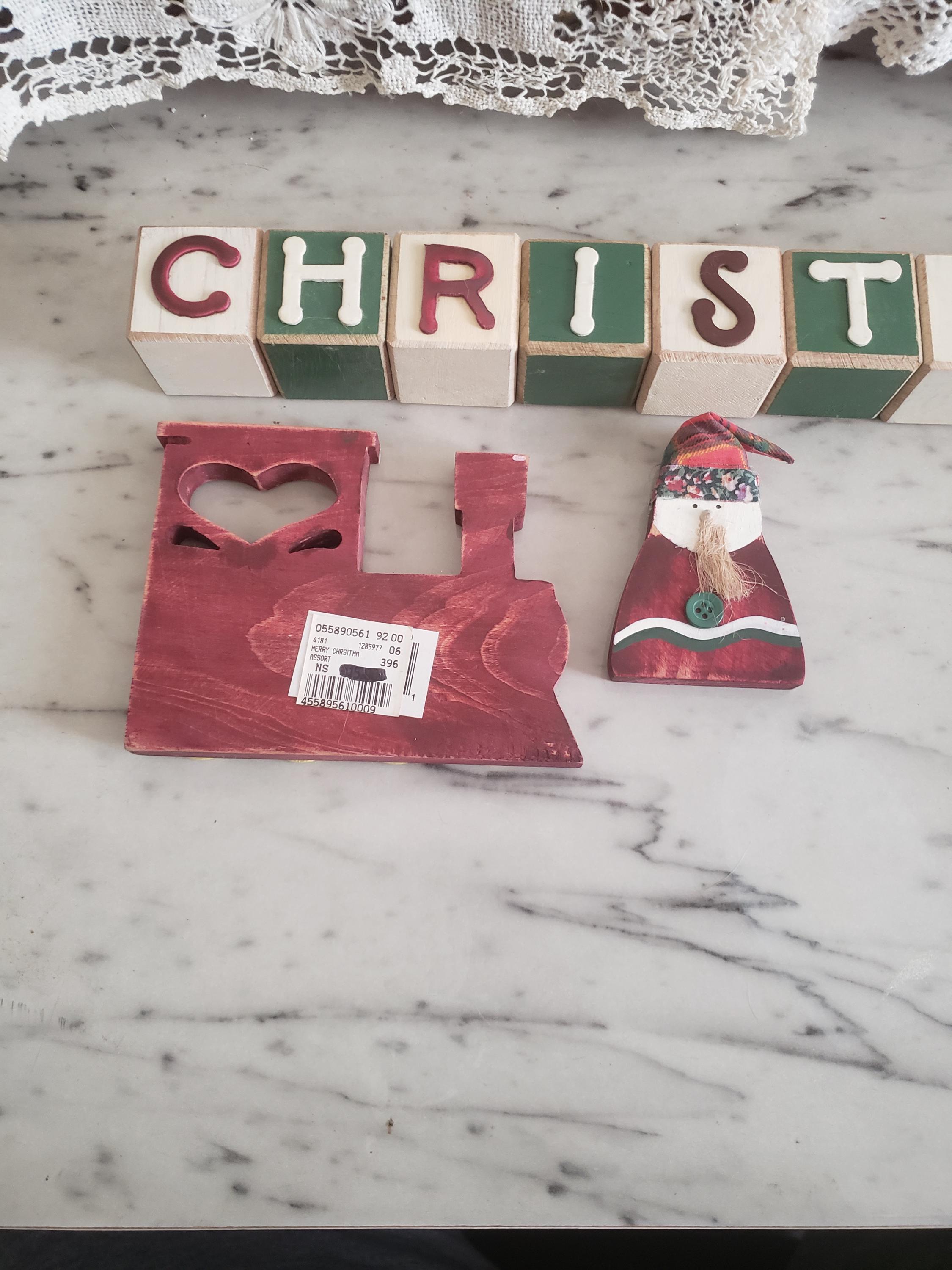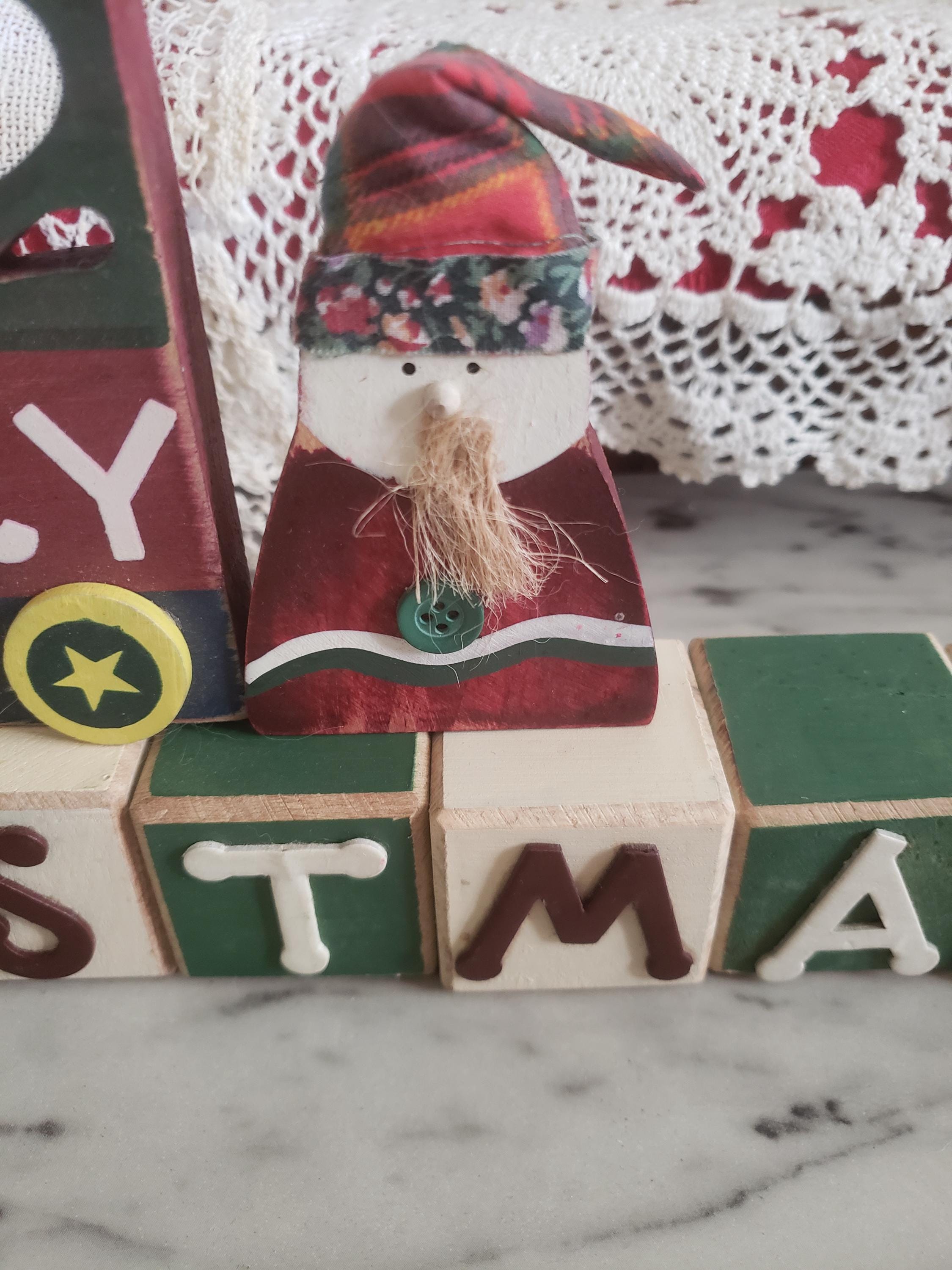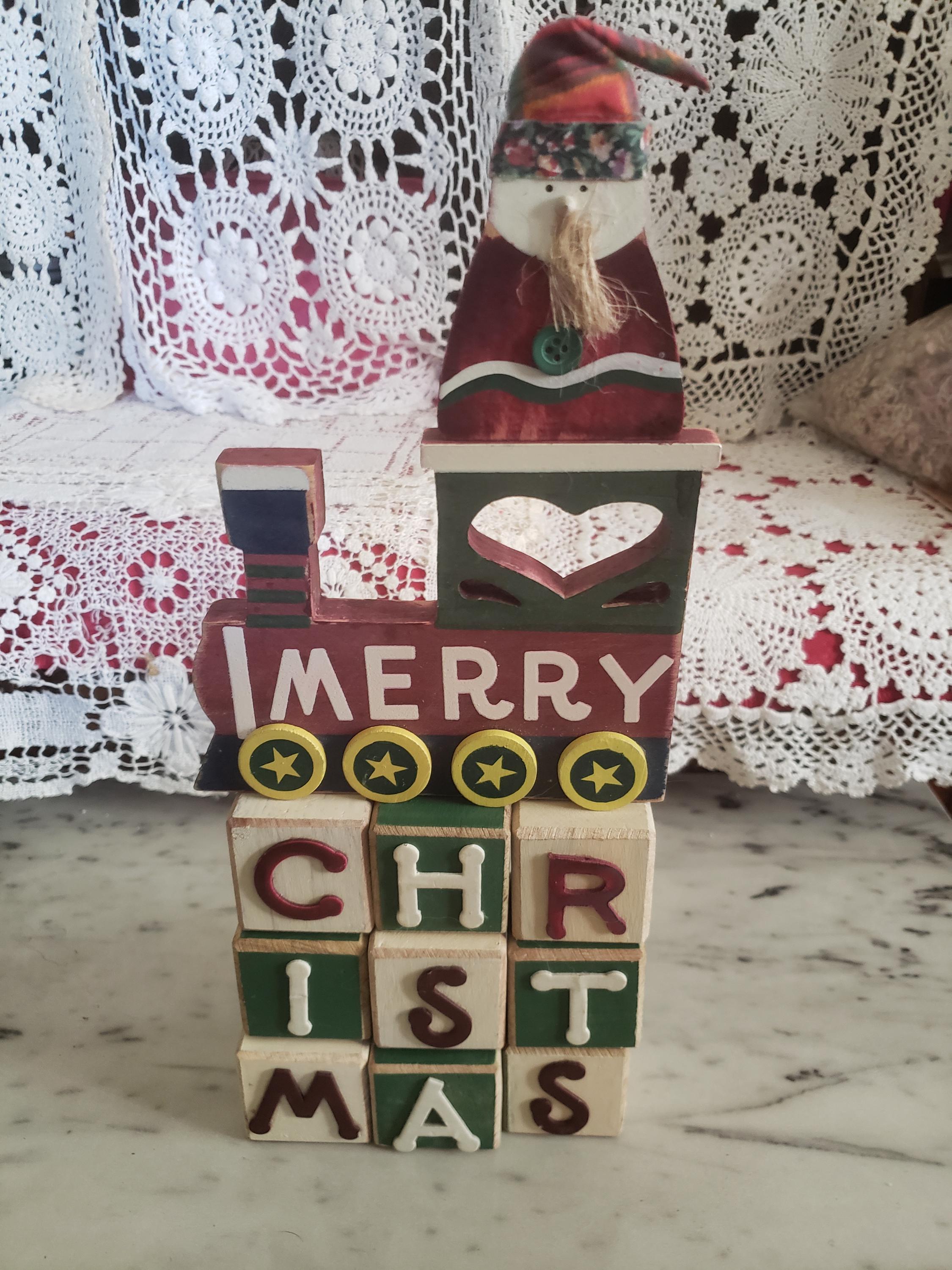 Vintage Wood Christmas Decoration: Train, Letter Blocks & Santa