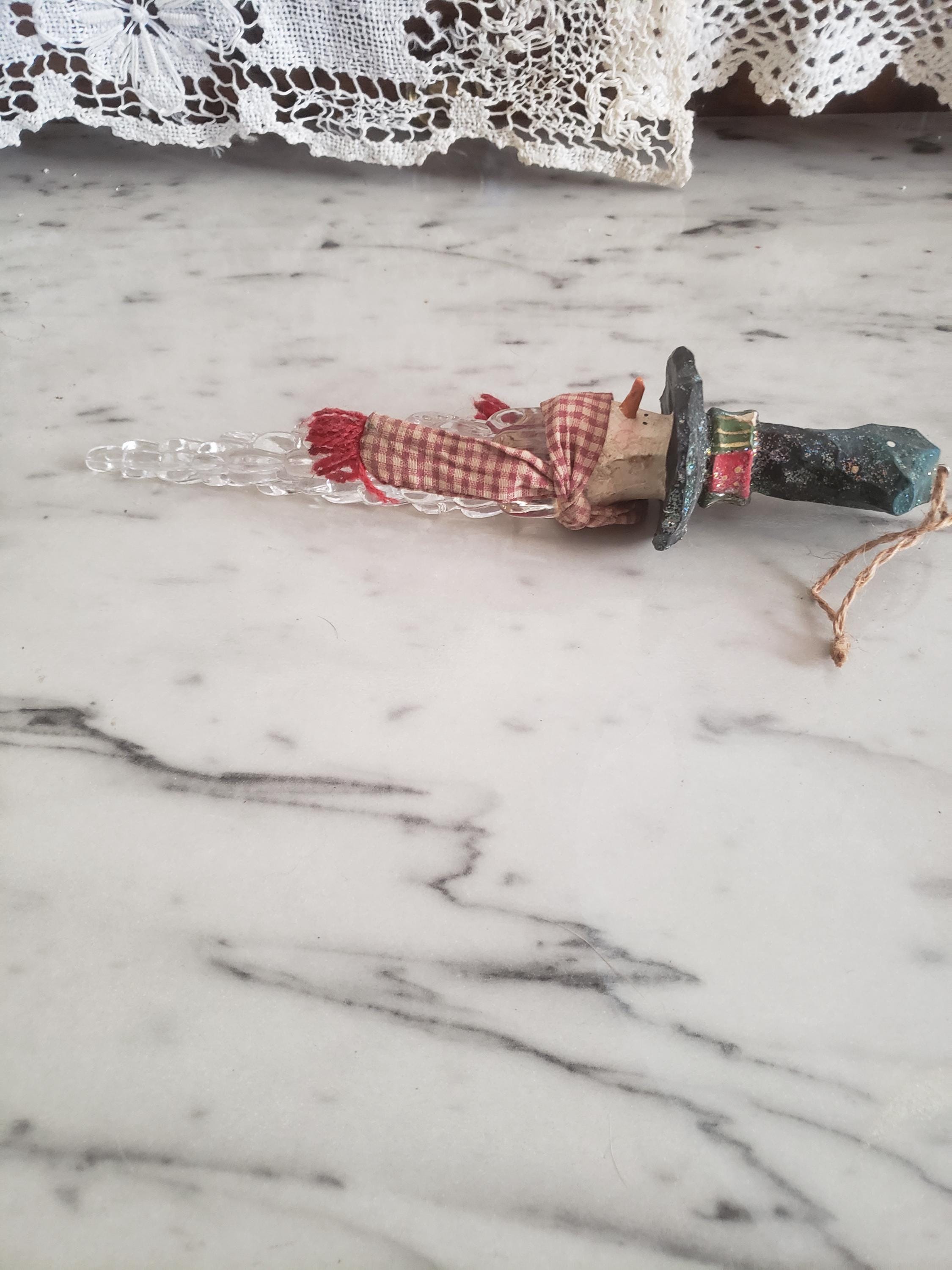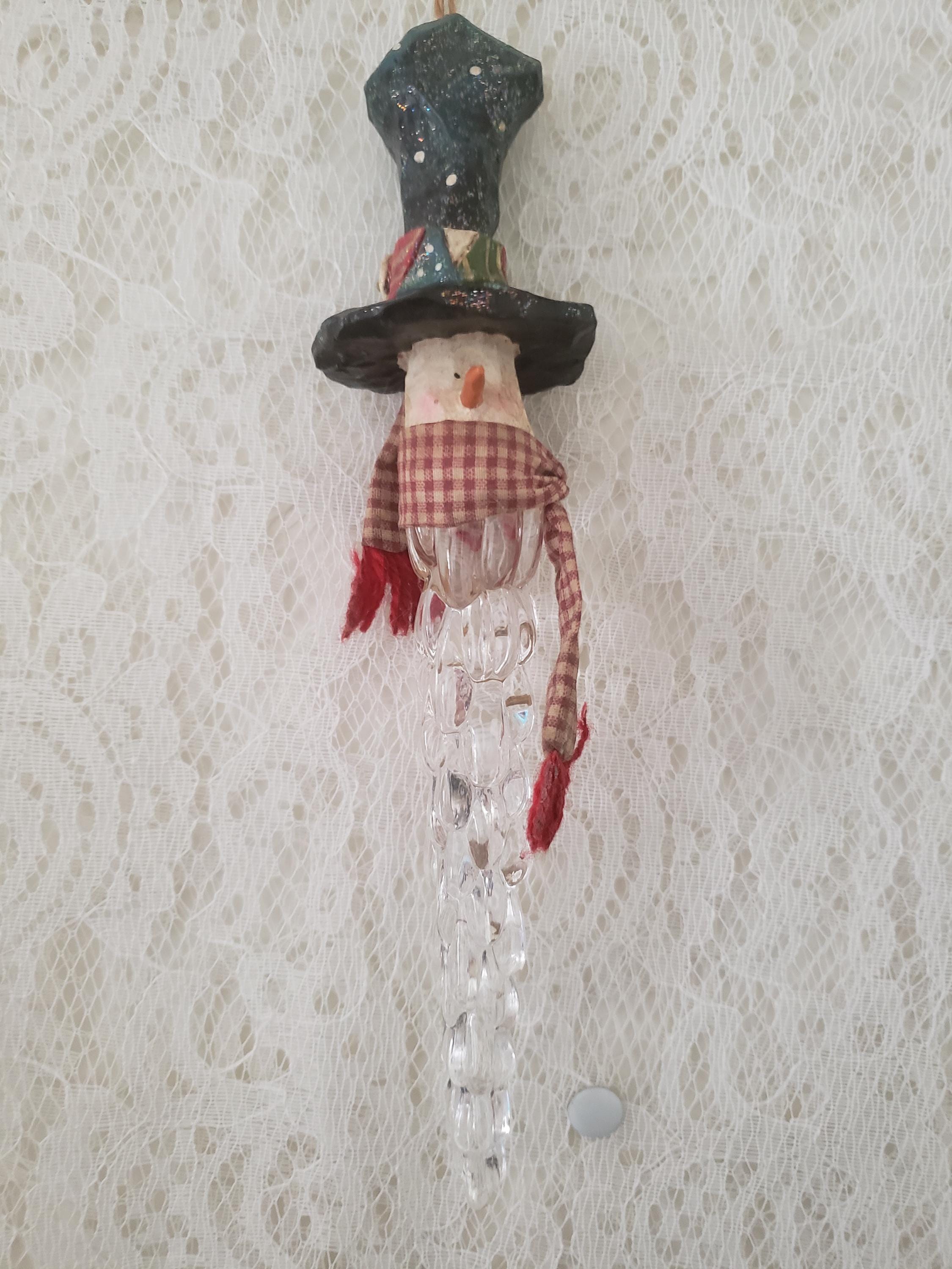 Vintage Snowman Christmas Ornament: Resin Icicle, Country Scarf