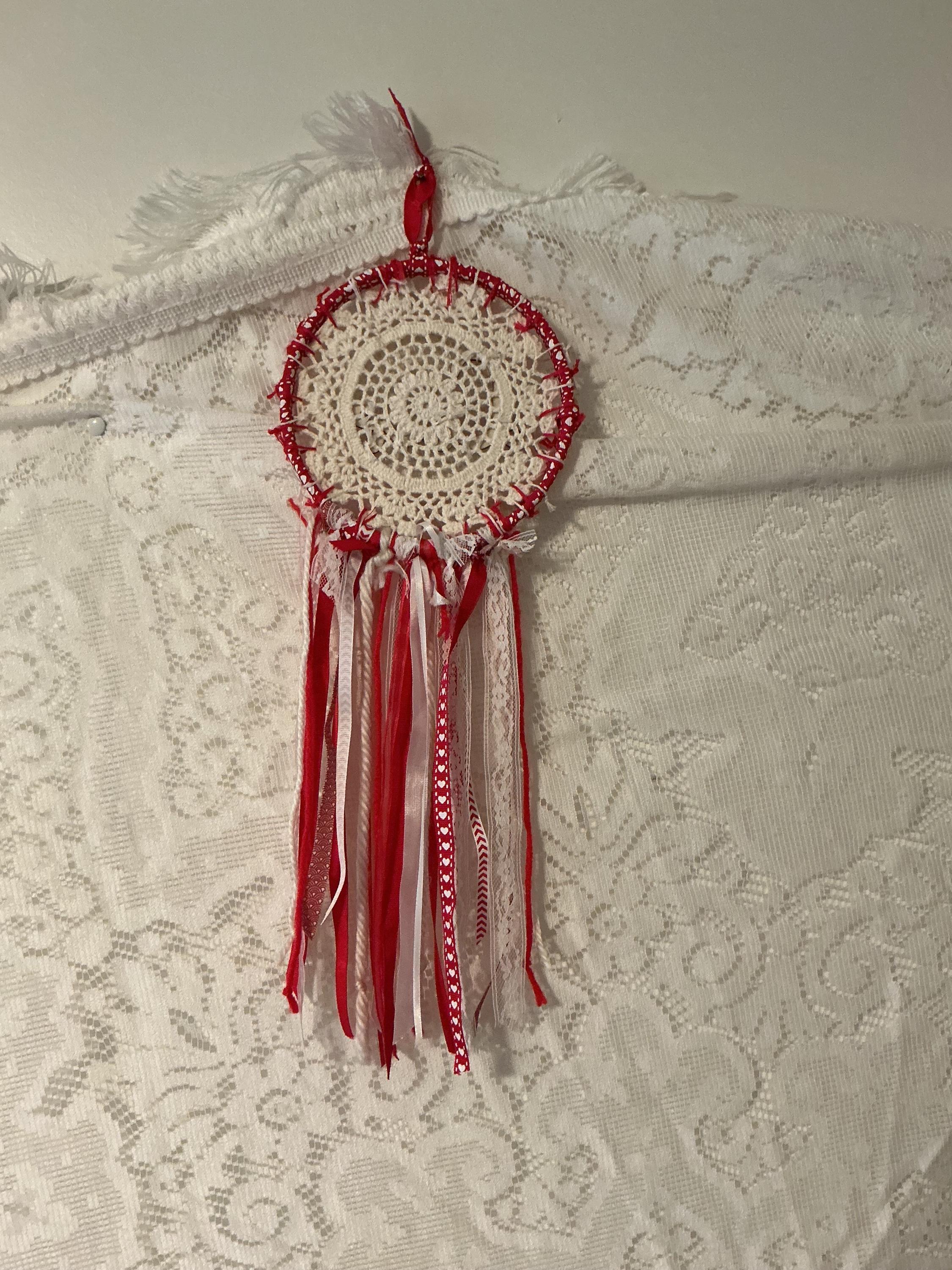 Colorful of red &white dream catcher handmade by me!